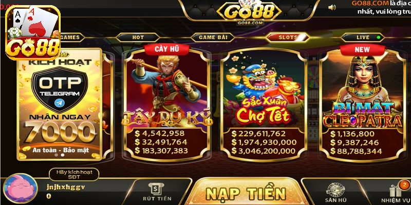 Phần hũ là mục tiêu của tất cả tân binh khi tham gia game Go88. Để ăn được hũ một cách hiệu quả, bạn nên chú ý đến phần tiền thưởng trong hũ đặt cược một cách thông minh. Khi bet thủ chơi, sau mỗi ván, số tiền trong hũ sẽ tăng lên nhiều lần.